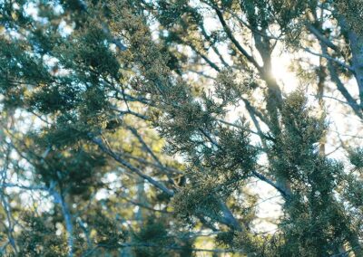 Description: Despite its common name, Mountain Cedar is a juniper tree. This drought-tolerant evergreen appears as a large shrub or medium-sized tree, up to 30’. Its bark is reddish-brown and peels in long strips, eventually developing into shallow fissures as the tree ages. Its bright green feathery foliage grows in dense sprays. The scale-like leaves are 1/16”-3/16” long, are bluntly pointed, and have tiny teeth. Mountain Cedar is dioecious, meaning that male and female cones grow on different plants. Male trees grow pollen-producing cones that are oblong, yellow-brown, about the size of a grain of rice, and grow on the tips of the branchlets. Female trees grow berry-like seed cones 1/8”-3/16” long. They have a soft, pulpy texture and appear green, later maturing to a purple color several months after pollination. Many people are allergic to the Mountain Cedar pollen, resulting in outbreaks of “cedar fever” in late winter.